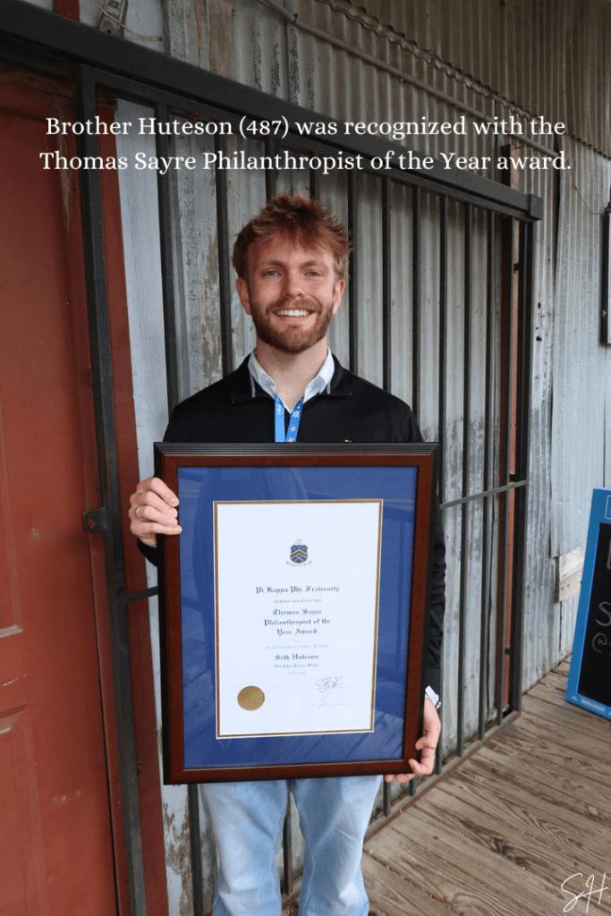 “Seth Huteson, Eta Rho (Texas State), is the 2026 recipient of the Thomas Sayre Philanthropist of the Year Award.